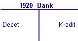 Varje konto har en debetsida, den vänstra, och en kreditsida, den högra. För att åskådliggöra detta användes tidigare något som hette T-konton. Om vi tar kontot 1920 Bank (kan t.ex. vara företagets checkräkningskonto) kan det visas på detta sättet: